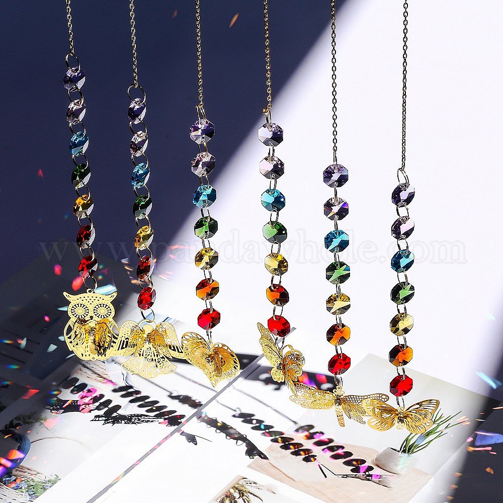 Стеклянные разноцветные восьмиугольные бусины подвесные украшения, Металлический оконный радужник, подвесной ловец солнца для украшения крыльца дома и сада