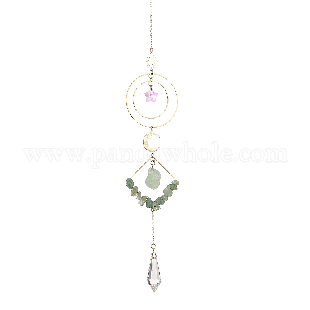 Подвесные ловцы солнца из натурального зеленого авантюрина, латунное кольцо и стеклянные подвески-капли для украшения дома