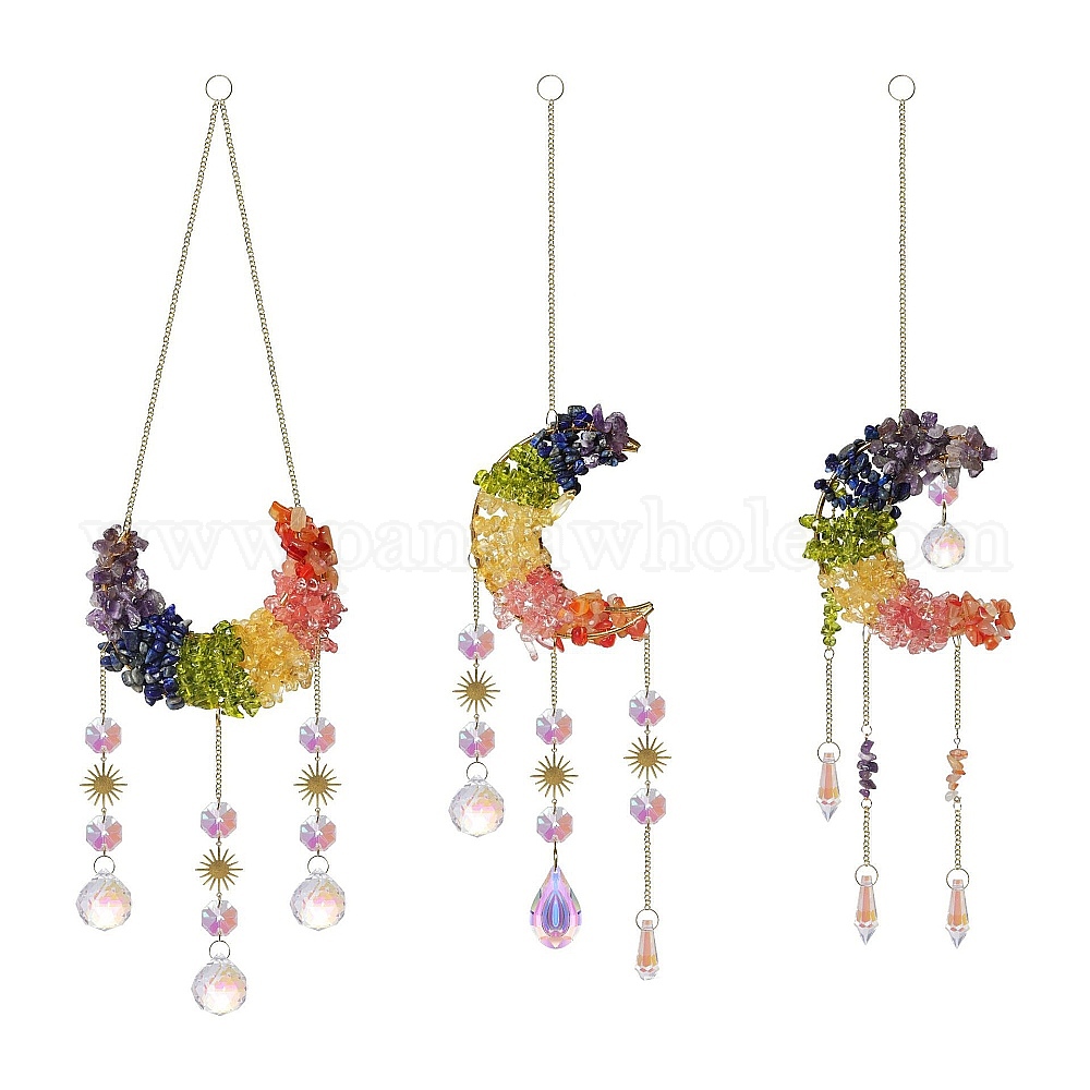 • Разноцветный Подвесные украшения в виде луны из натурального драгоценного камня и металла, Стеклянный ловец солнца с кисточкой для украшения крыльца дома и сада, красочный, 360 мм