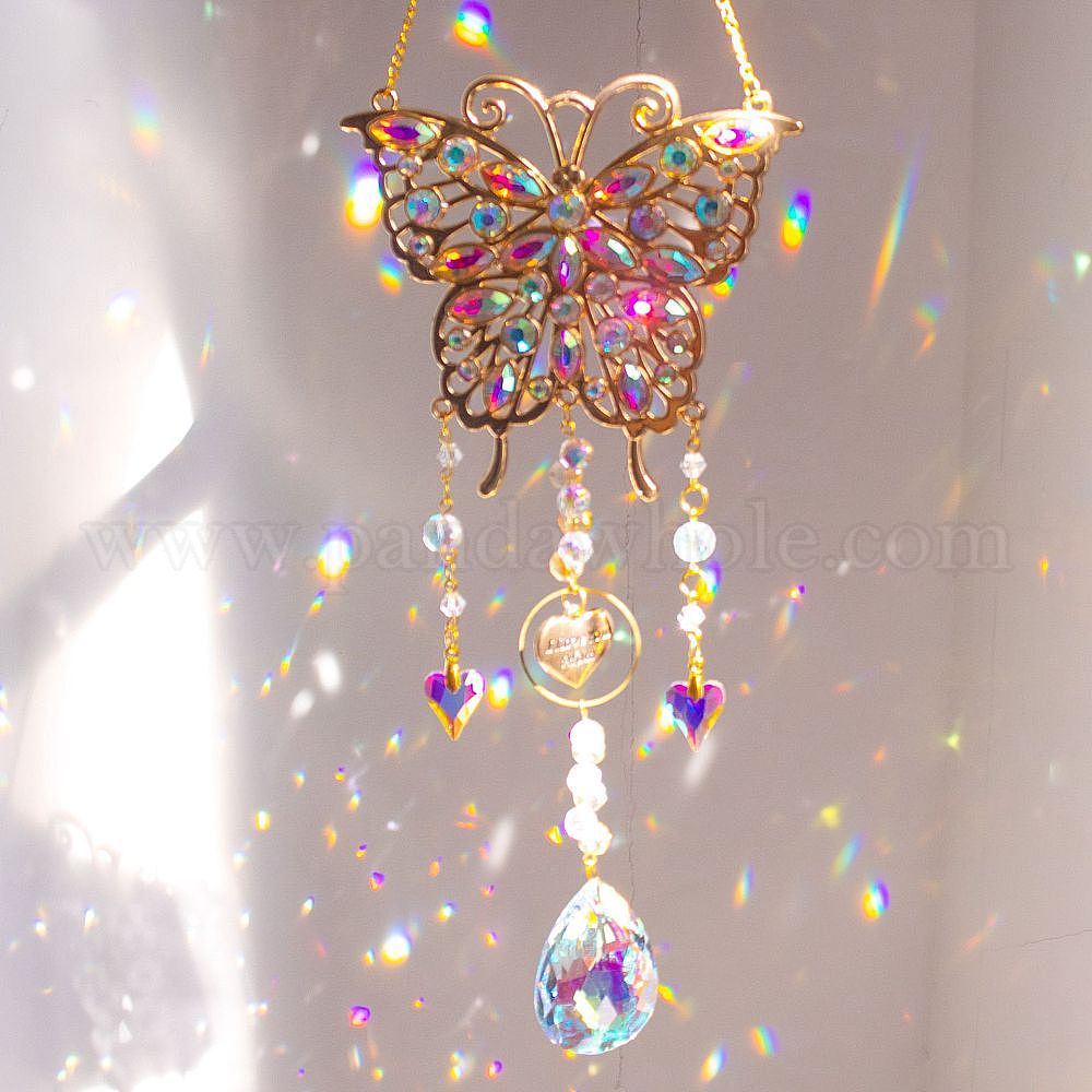 K9 стекло с подвесными украшениями в виде бабочки из сплава, Радужный светильник на окнах, подвесной ловец солнца для украшения крыльца дома и сада (02XGQJ)