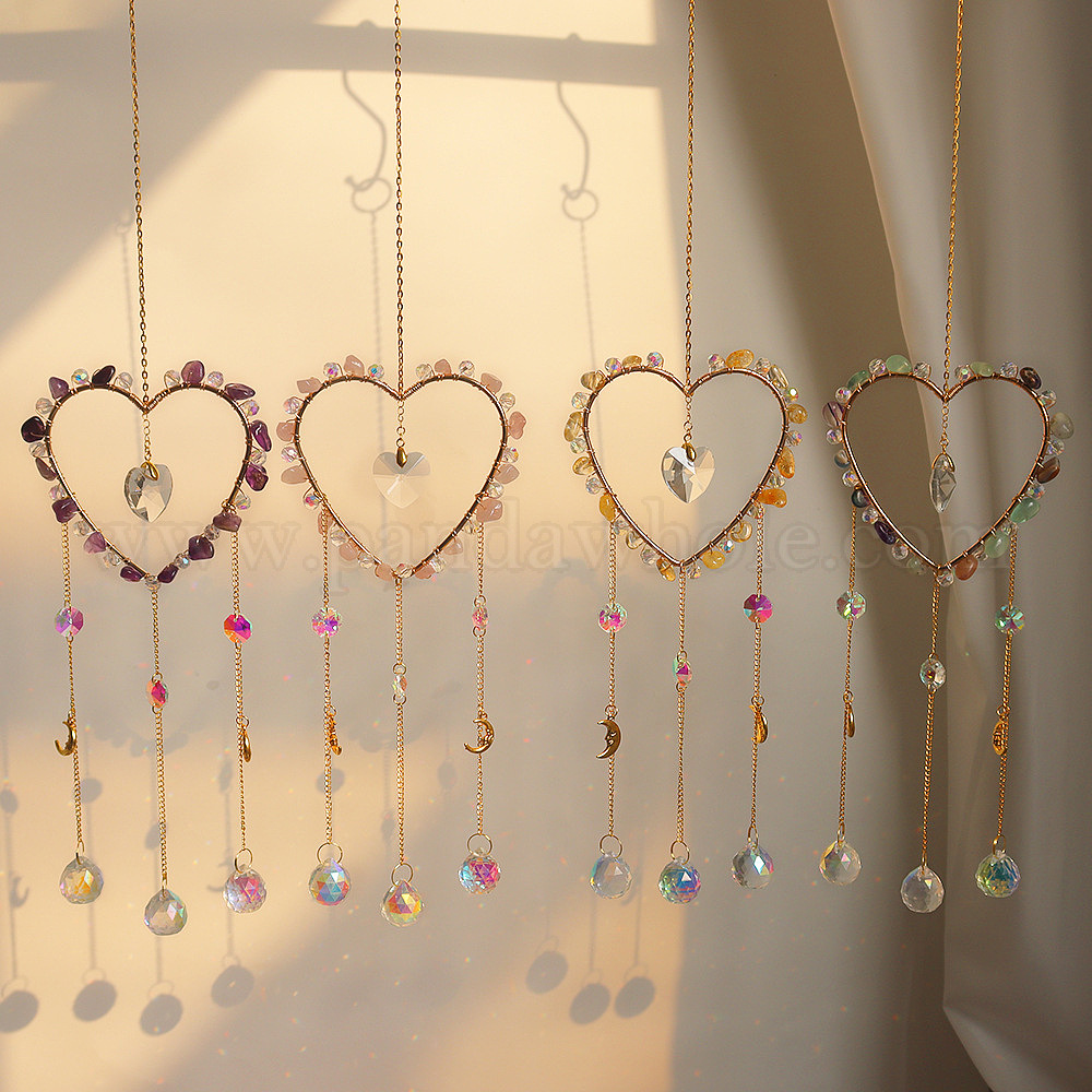 Подвеска-ловец солнца из драгоценного камня и хрустального стекла, создатель радуги, украшение сада и дома своими руками, сердце
