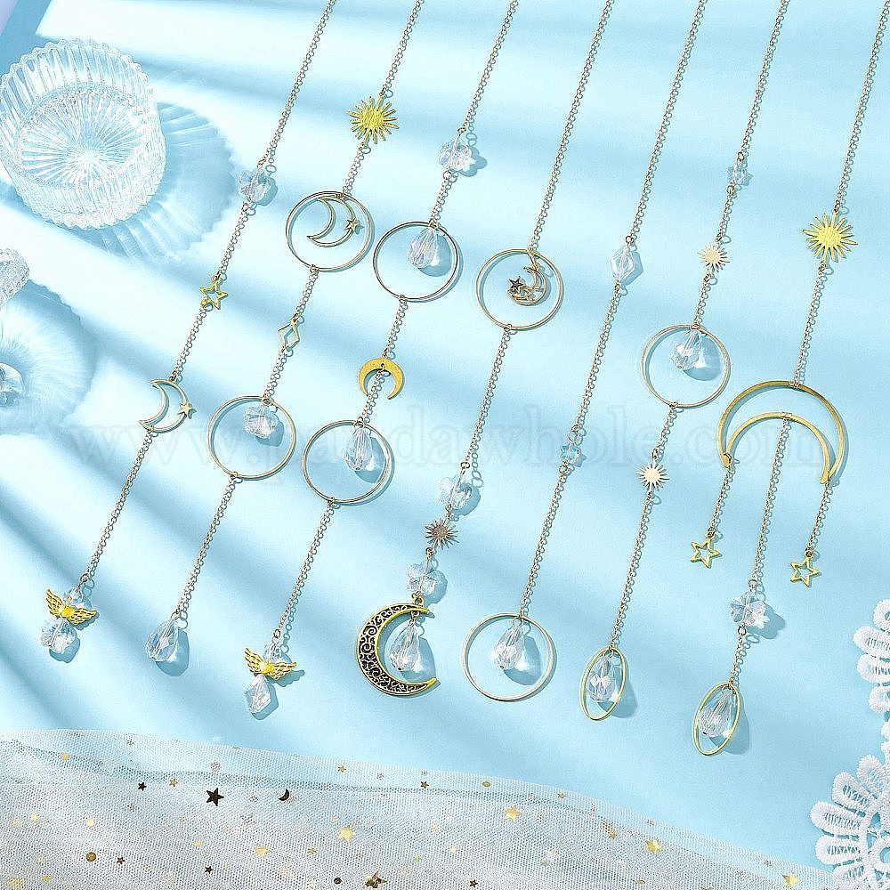 Подвесные украшения в виде луны из латуни, стеклянные каплевидные звездочки-ловушки для уличного декора сада