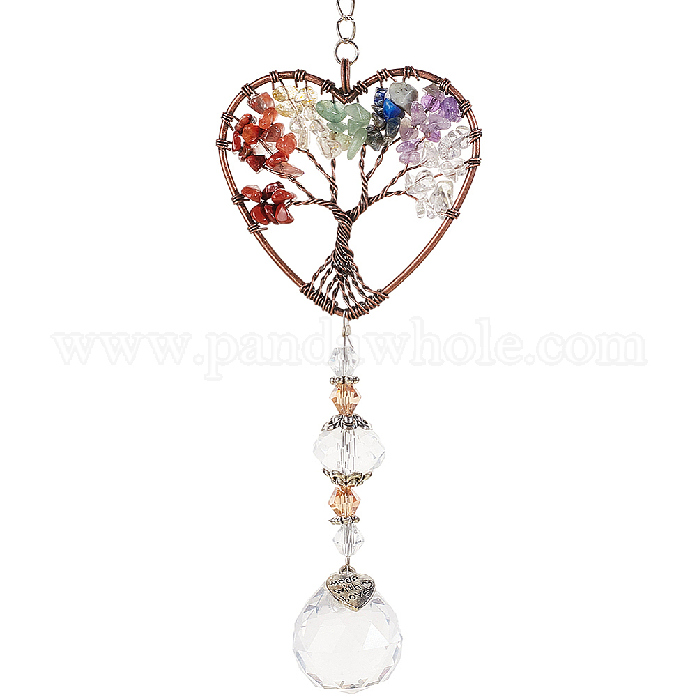 1подвесные украшения в форме сердца из натурального драгоценного камня с деревом жизни, стеклянные круглые ловцы солнца с кисточками для украшения сада на открытом воздухе