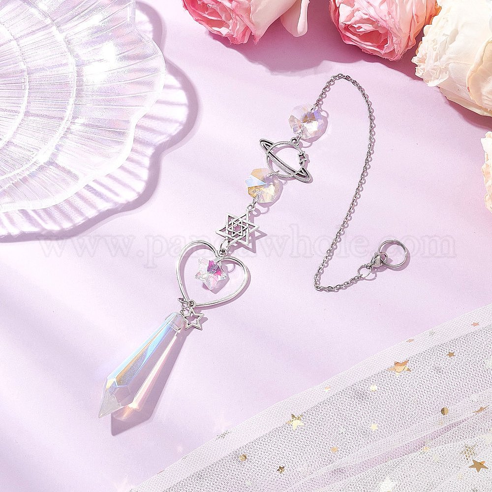 Сплав планета луна подвесные украшения, Стеклянные конусообразные ловцы солнца с кисточками для украшения сада на открытом воздухе