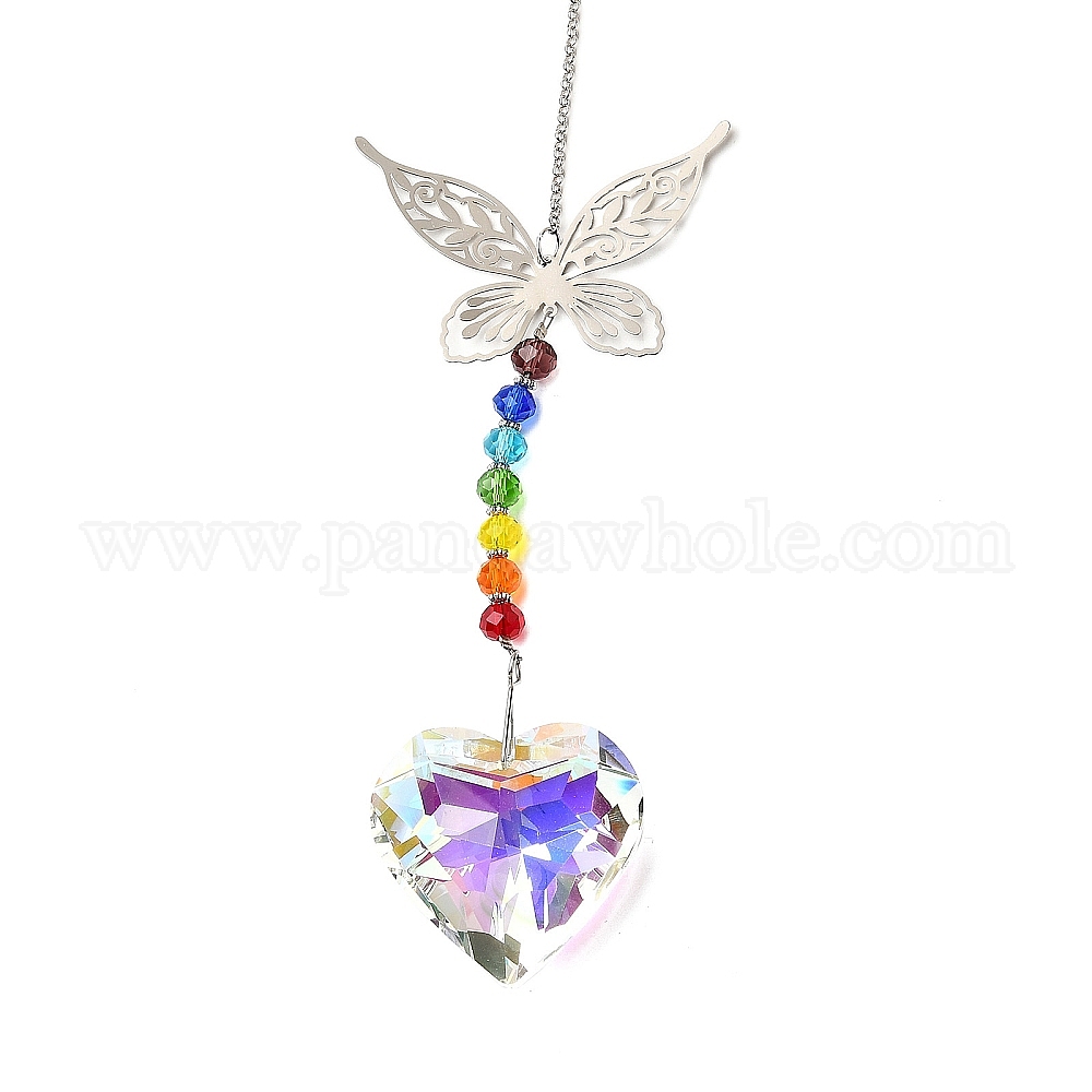 Подвесные украшения из сплава бабочки, Стеклянные сердечки-ловушки для солнца для украшения окон в саду
