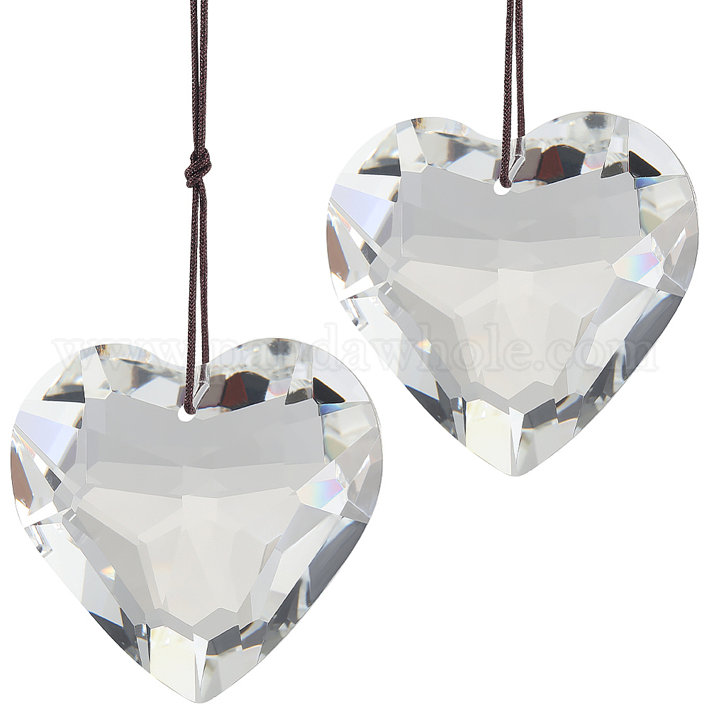 2шт. стеклянные подвески в форме сердца, с веревкой, подвесные ловцы солнца