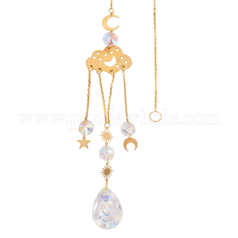 • Золотой 1 Декоративный подвесной элемент в виде ловца солнца из граненого стекла, с латунной и железной фурнитурой, для дома, садовый декор, облако, золотые, 480 мм