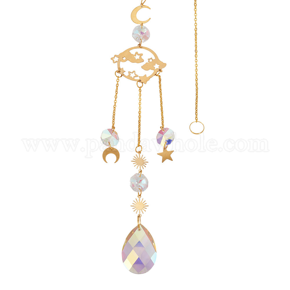 1 Декоративный подвесной элемент в виде ловца солнца из граненого стекла, с латунной и железной фурнитурой, для дома, садовый декор, планета (0363CW)
