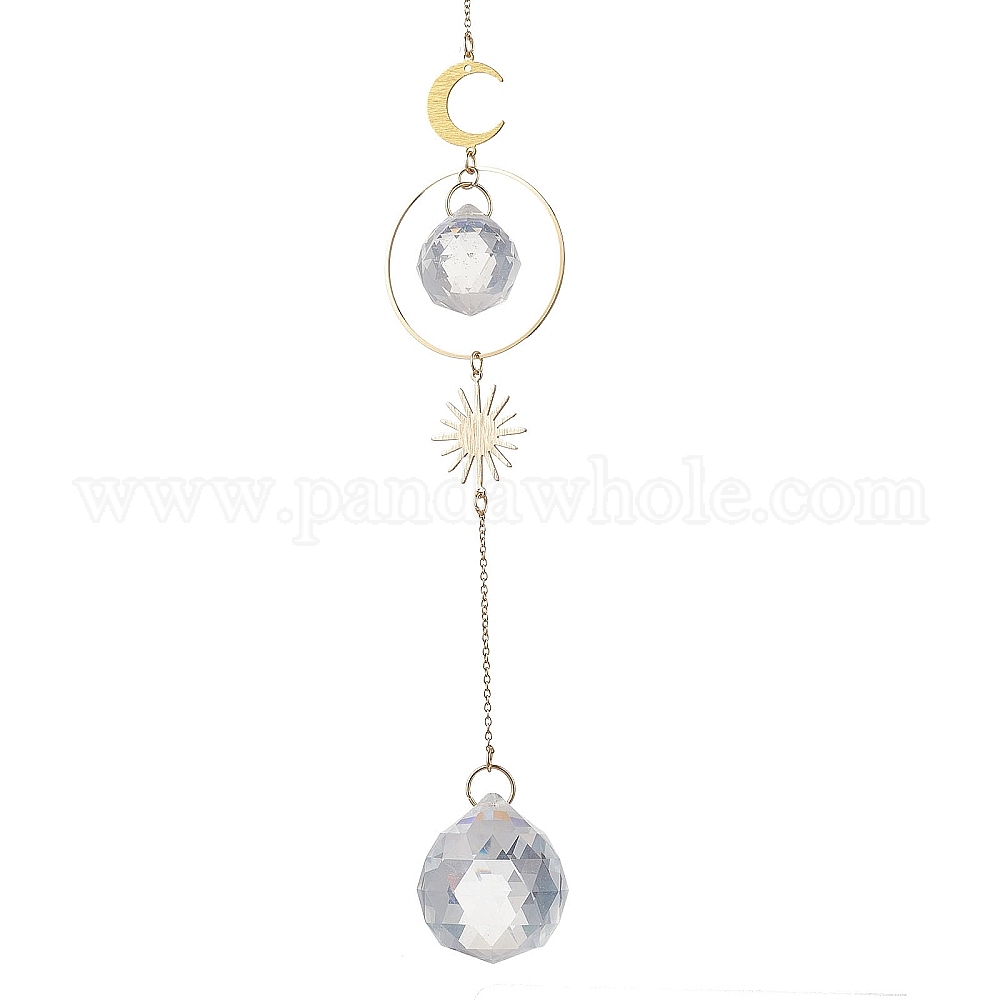 Каплевидные стеклянные подвесные ловцы солнца, латунное солнце и луна для декора сада