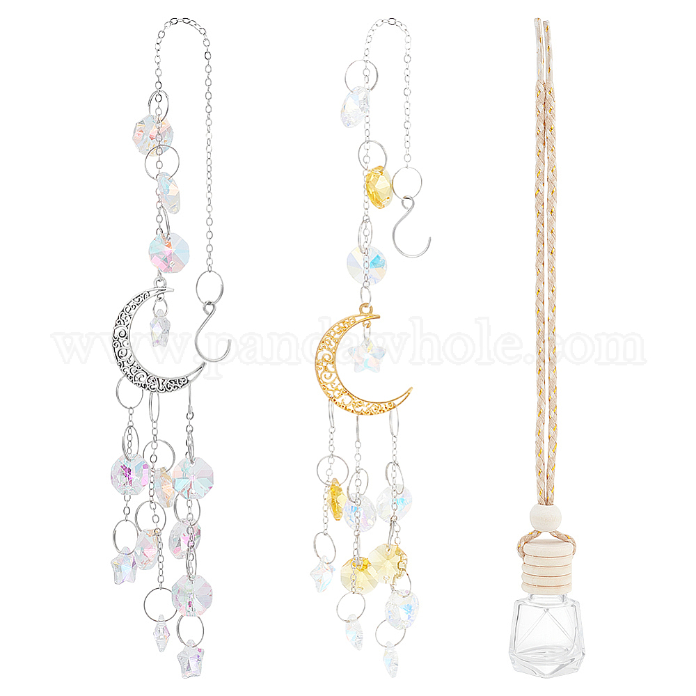 2шт. 2 стили подвесных подвесных светильников из лунного стекла и сплава, для украшения сада, патио и балкона, с 1подвесками из стекла, пустая бутылка духов (037WHH)