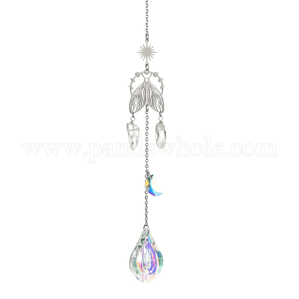 • Платиновый & Цвет Нержавейки 304 Подвесные ловцы моли из нержавеющей стали, стеклянные подвески-капли для декора садовых окон, платины и нержавеющая сталь цвет, 261 мм