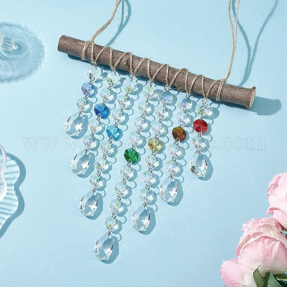 Стеклянные каплевидные и восьмиугольные бусины, подвесные ловцы солнца, создатель радуги, для украшения сада и дома, с деревянной палочкой