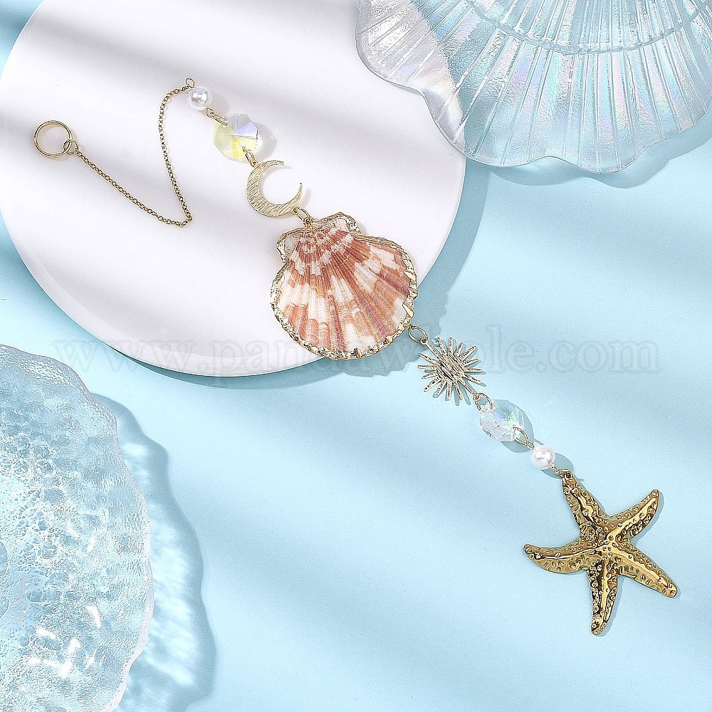 Подвески из ракушек, стекла и нержавеющей стали с гальваническим покрытием, ловцы солнца из ракушек-звезд, для наружного украшения сада