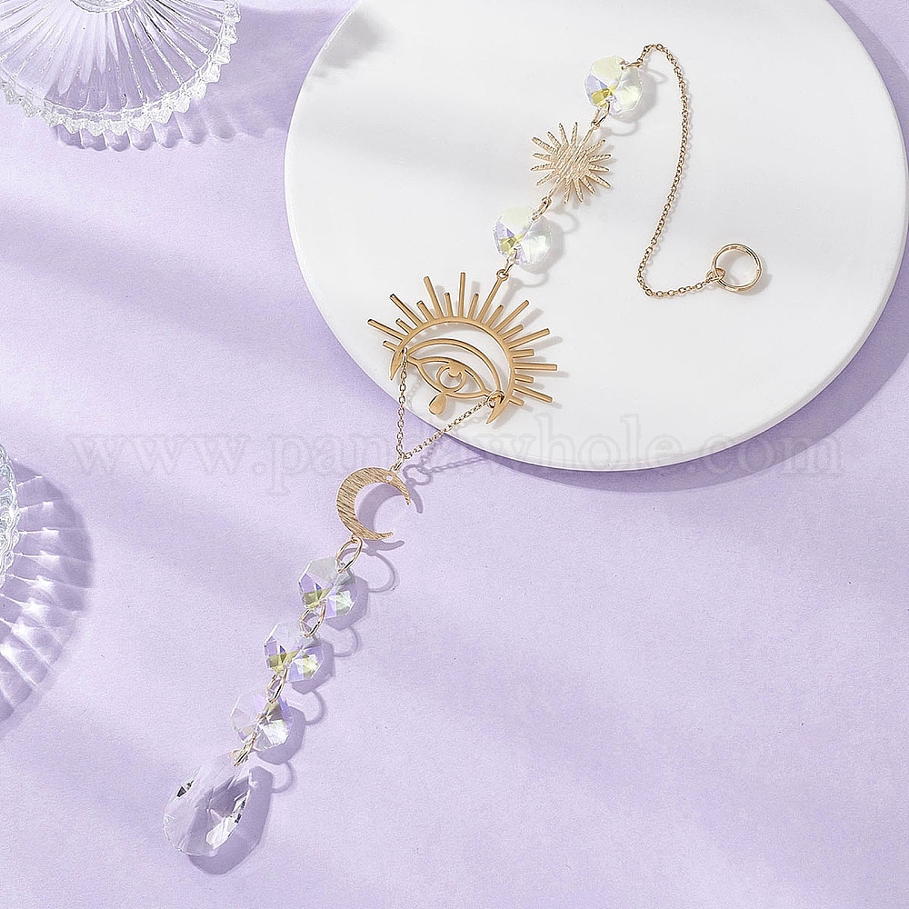 Стеклянные подвесные ловцы солнца, с латунным звеном и 201 подвесками из нержавеющей стали, создатель радуги, для наружного украшения сада