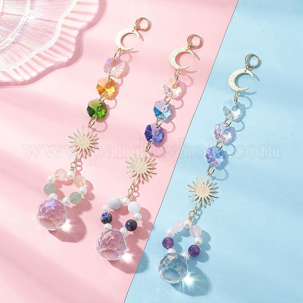 Стеклянные подвесные ловцы солнца, с латунными подвесками и бусинами из драгоценных камней, создатель радуги, для наружного украшения сада