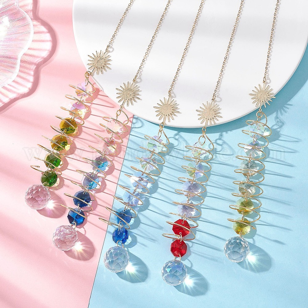 • Небесно-голубой Стеклянные круглые и восьмиугольные бусины подвесные ловцы солнца, звенья из латуни и нержавеющей стали для наружного и садового декора, солнце, голубой, 275 мм