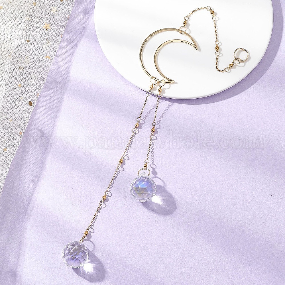 Латунные подвесные ловцы солнца в форме луны, стеклянная круглая кисточка для украшения сада и дома