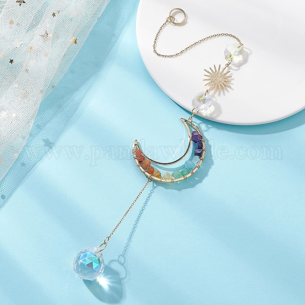 Чакра, натуральные драгоценные камни и подвесные ловцы солнца в форме луны из латуни, стеклянная круглая кисточка для украшения сада и дома