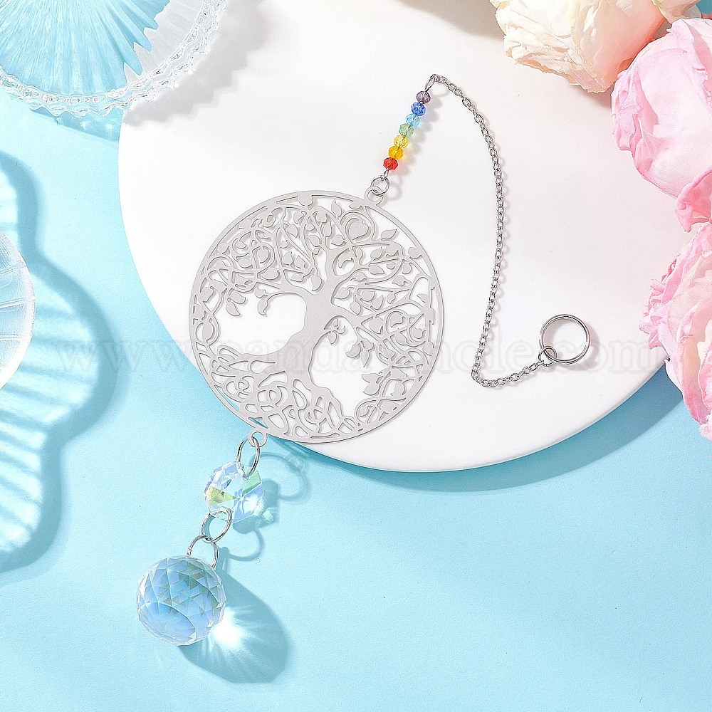 201 Подвесной ловец солнца в форме древа жизни из нержавеющей стали и радужного хрустального стекла