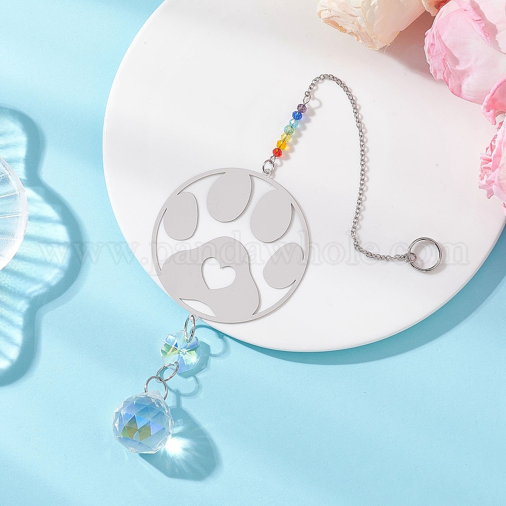 201 Подвесной ловец солнца в форме отпечатка лапы из нержавеющей стали и радужного хрустального стекла