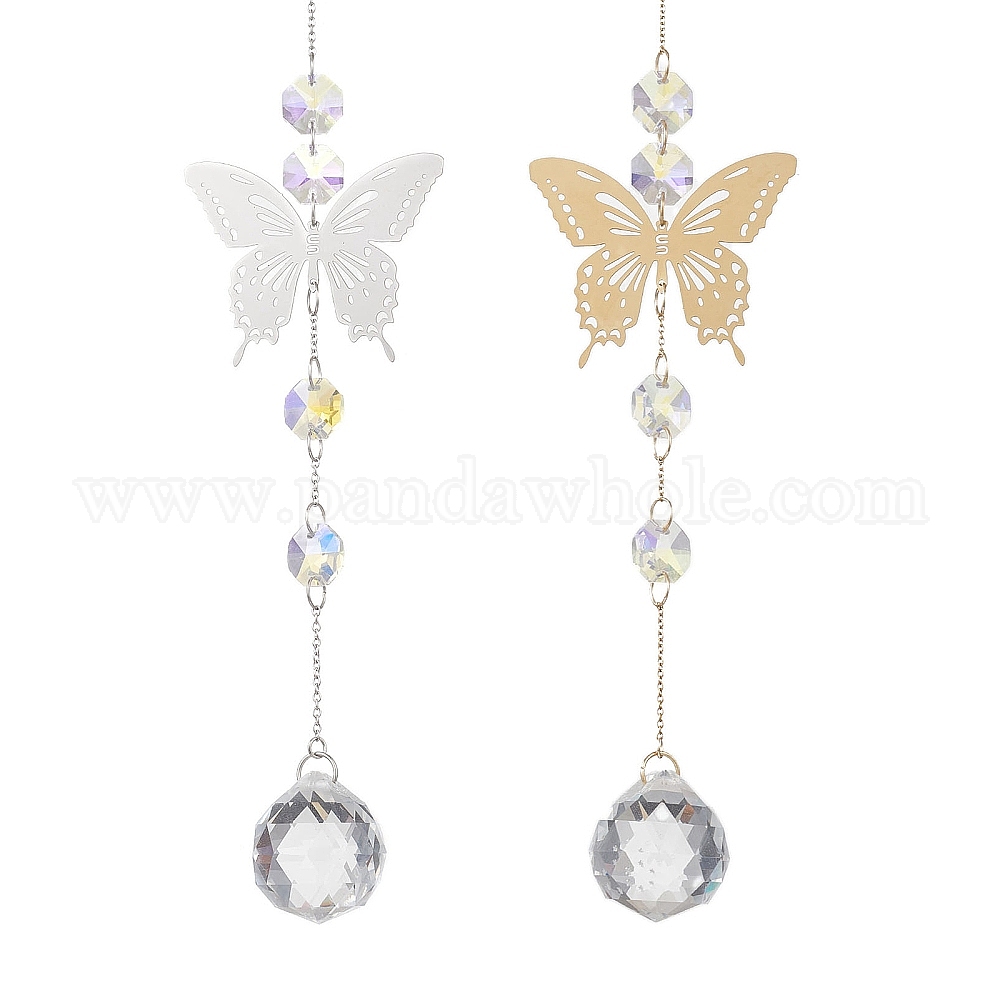 201 Подвески-коннекторы из нержавеющей стали и стеклянные подвески-ловец солнца, с 304 кабельными цепочками из нержавеющей стали, бабочка