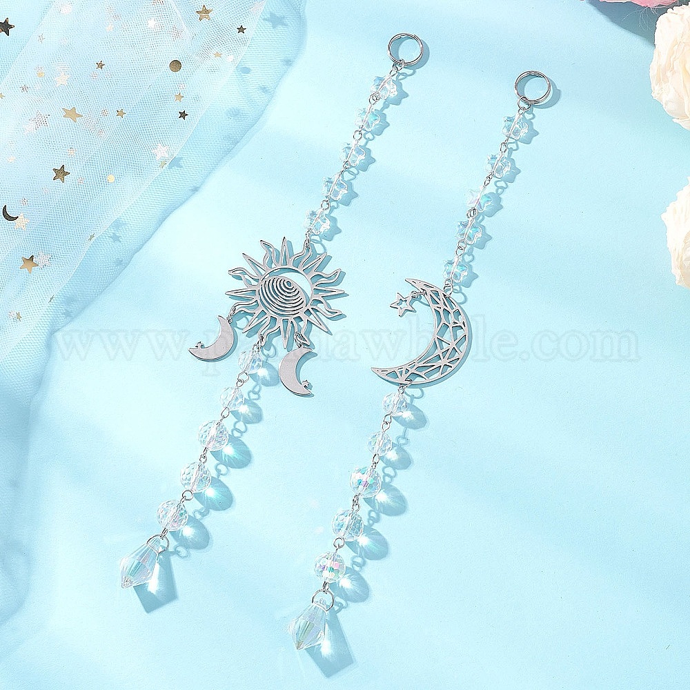 • Нержавеющая Сталь Цвет 2шт. стеклянные подвесные ловцы солнца, с 201 подвесками из нержавеющей стали для украшения сада и улицы, Вс & луна, цвет нержавеющей стали, 215~218 мм