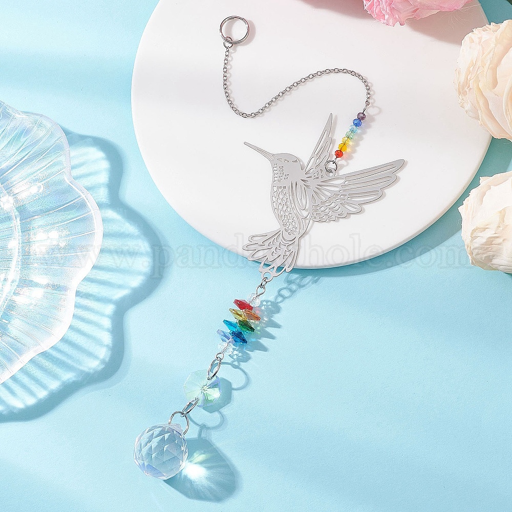 • Птица Стеклянные бусины и 201 подвесные ловцы солнца из нержавеющей стали, для садовых оконных украшений, птица, 285 мм