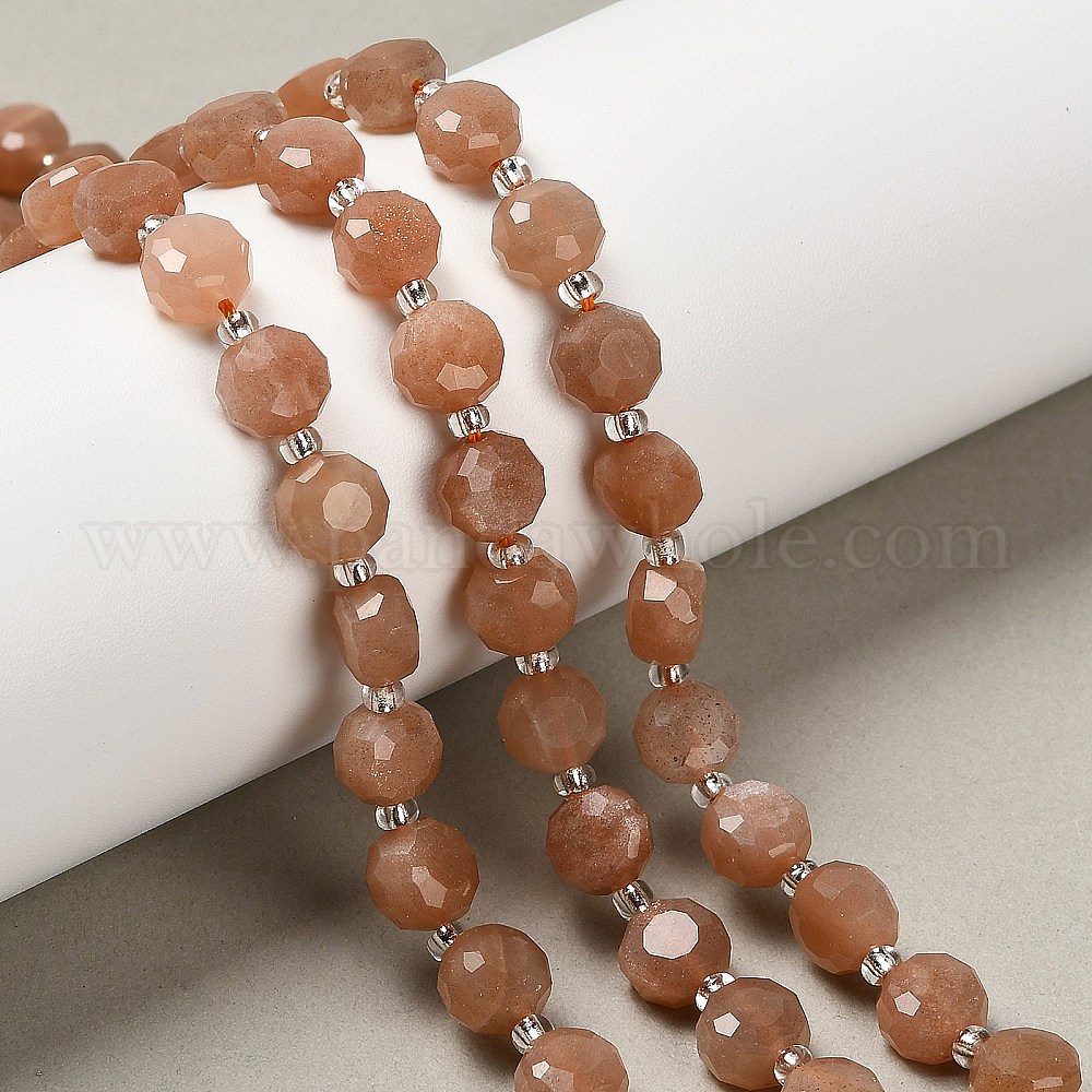 • Солнечный Камень Натуральный Sunstone бисер пряди, плоско-круглые, граненые, с бисером, 7.5~8x7~7.5x4.5~5 мм, отверстие : 1 мм, около 19~21 шт / нитка, 7.52~7.60'' (19.1~19.3 см)