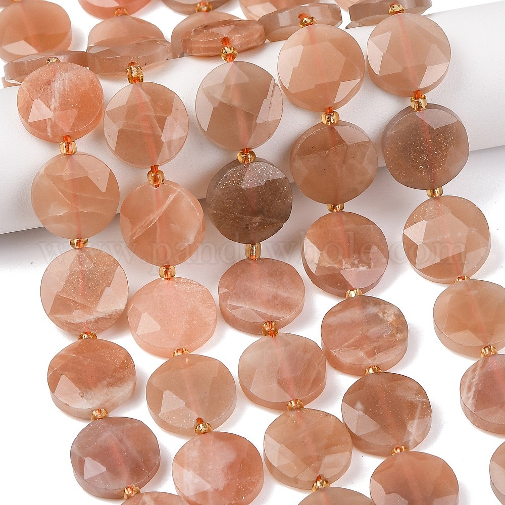 Натуральный Sunstone бисер пряди, плоско-круглые, граненый шестиугольный разрез, с бисером