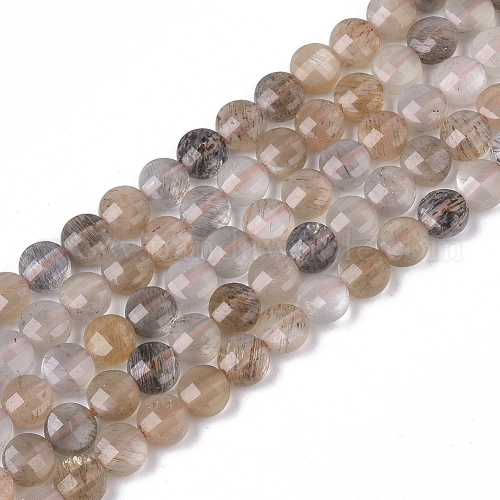 Натуральный Sunstone бисер пряди, граненые, плоско-круглые