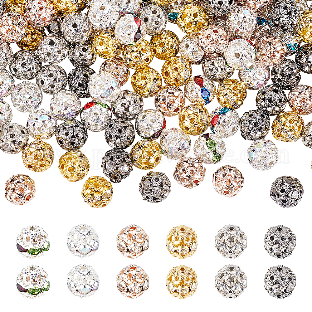300шт 6 цвета сплава горный хрусталь бусины, полый, круглые