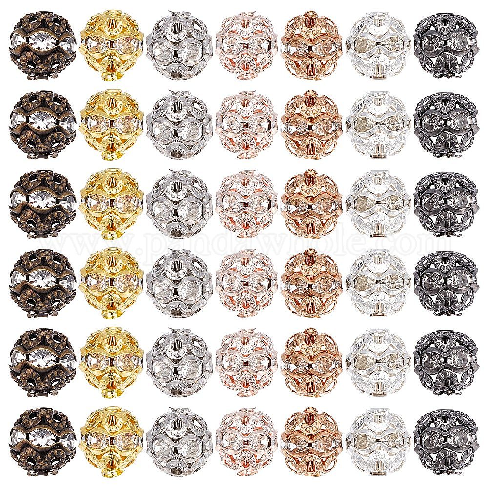 140шт 7 цвета сплава горный хрусталь бусины, полый, кристалл, круглые