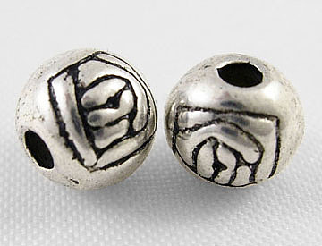 Сплавочные овальные бусины тибетского стиля , без свинца и без кадмия, круглая с цветком, диаметром около 6 мм , отверстие : 2 мм