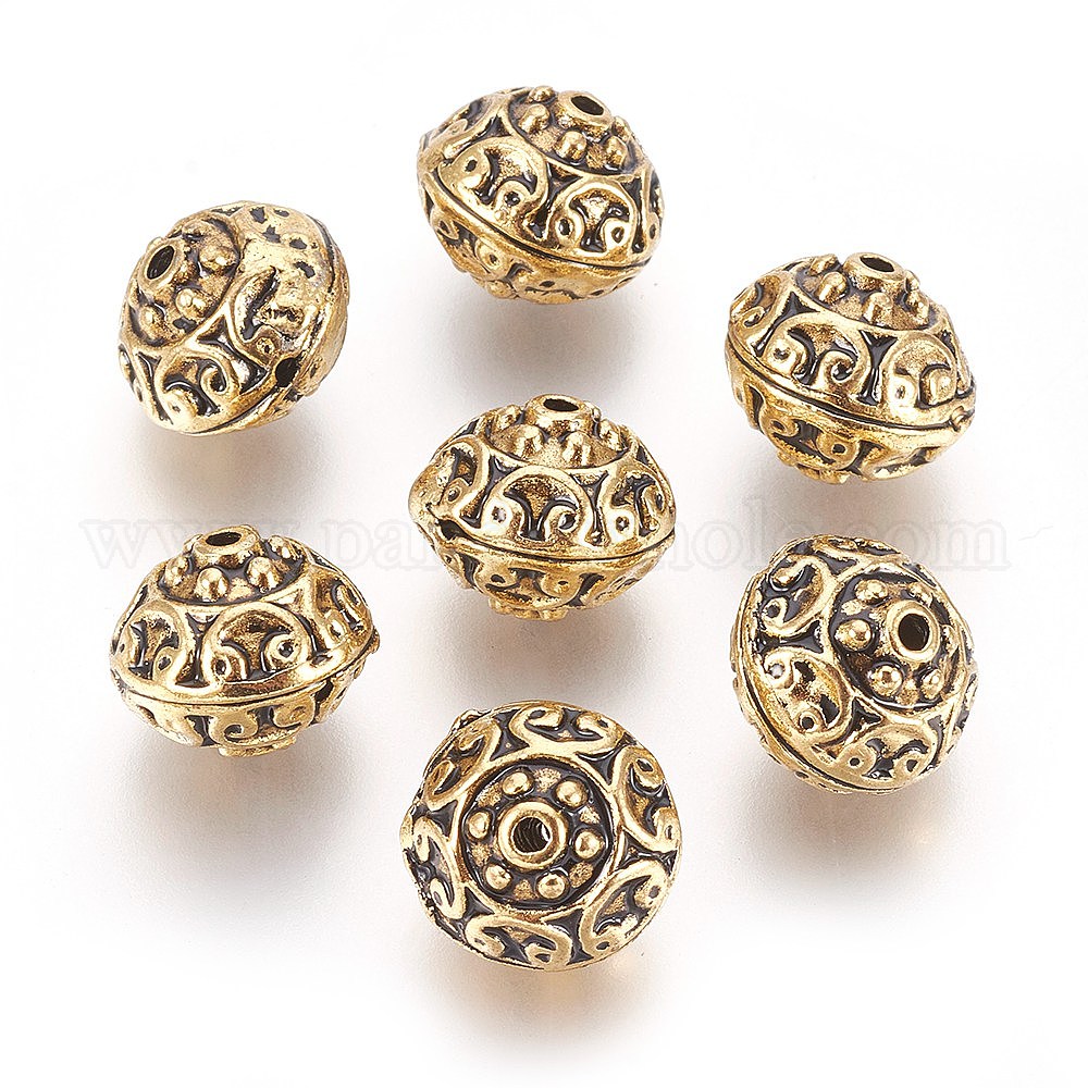 • Античное Золото Сплавочные овальные бусины тибетского стиля , без кадмия и без свинца, круглые, античное золото , 13x13 мм, отверстие : 1.5 мм