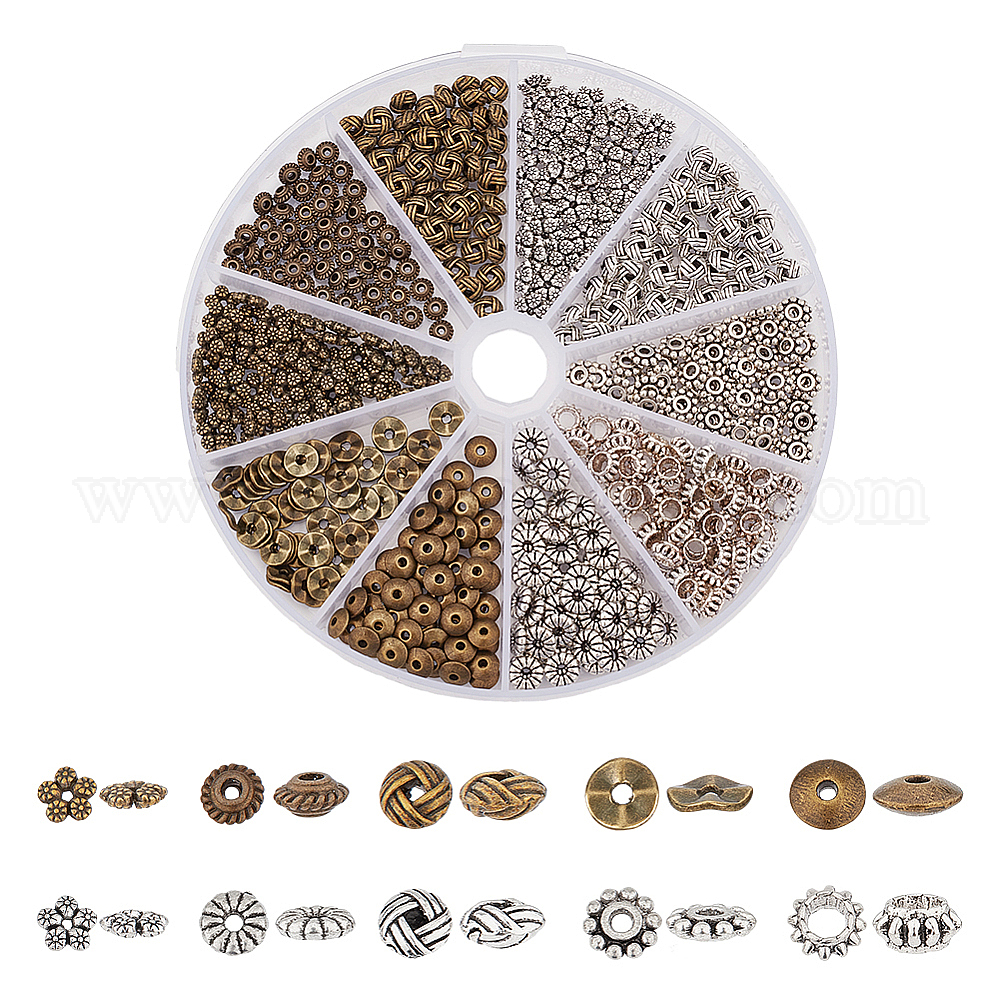 500шт 10 бусины из сплава в тибетском стиле, цветок и диск и плоский круглый