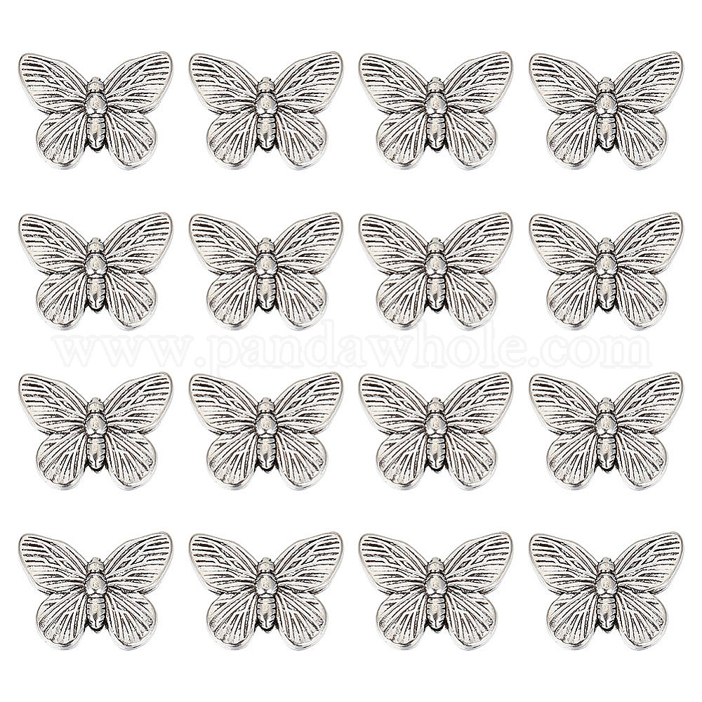 40 бусины из сплава в тибетском стиле, бабочка