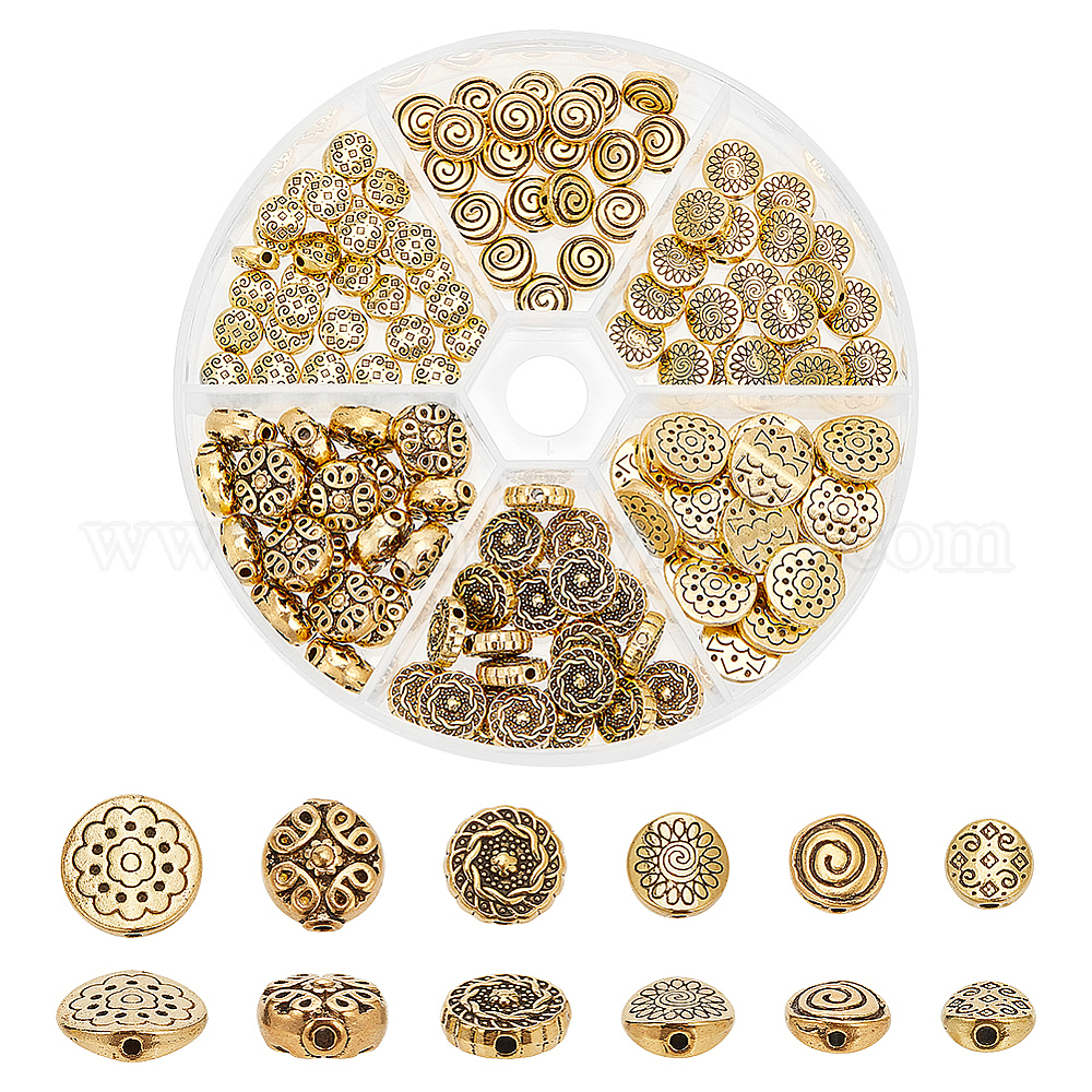 130шт 6 бусины из сплава в тибетском стиле, плоско-круглые