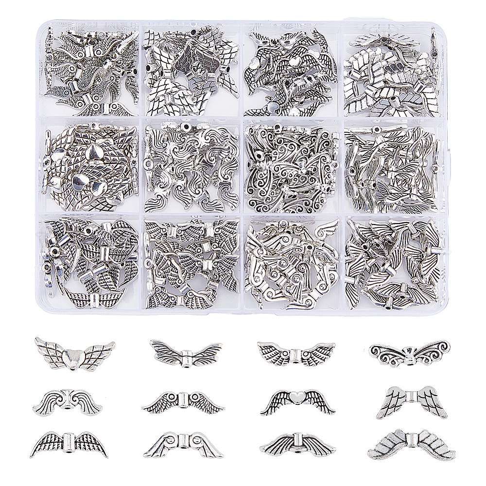 180 шт 12 стили бусины из сплава в тибетском стиле, крыло