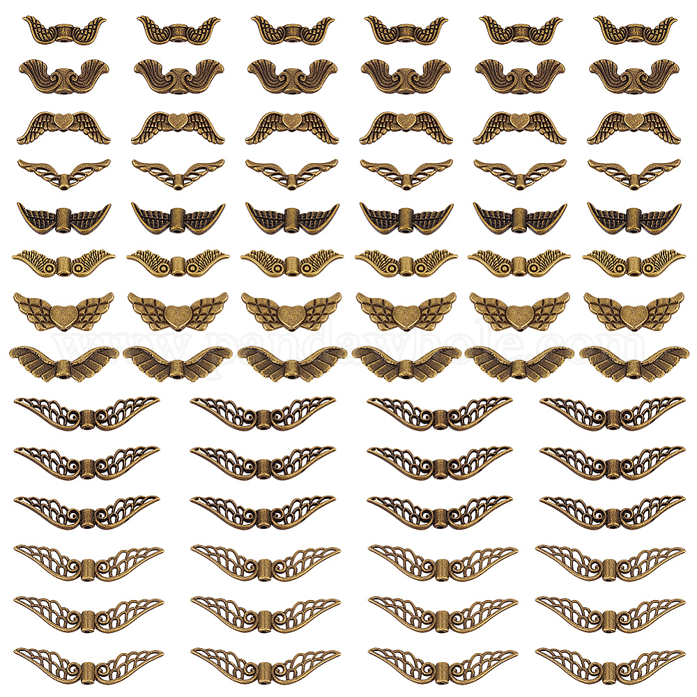 200 шт 10 стили бусины из сплава в тибетском стиле, крыло (02QDX6)