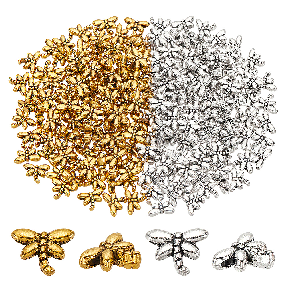 • Античный Серебрянный & Античный Золотой 200шт 2 цвета бусины из сплава стрекоза в тибетском стиле, без свинца и без кадмия, старинное серебро и античный золотой, 6x8 мм, отверстие : 0.7 мм, 100 шт / цвет