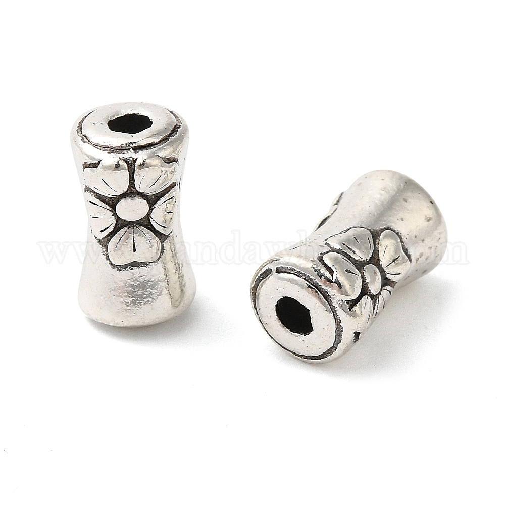 • Античное Серебро Сплавочные овальные бусины тибетского стиля , колонке с цветком, античное серебро, 12x7 мм, отверстие : 3 мм