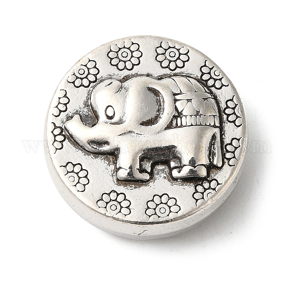 Сплавочные овальные бусины тибетского стиля , плоские круглые со слоном