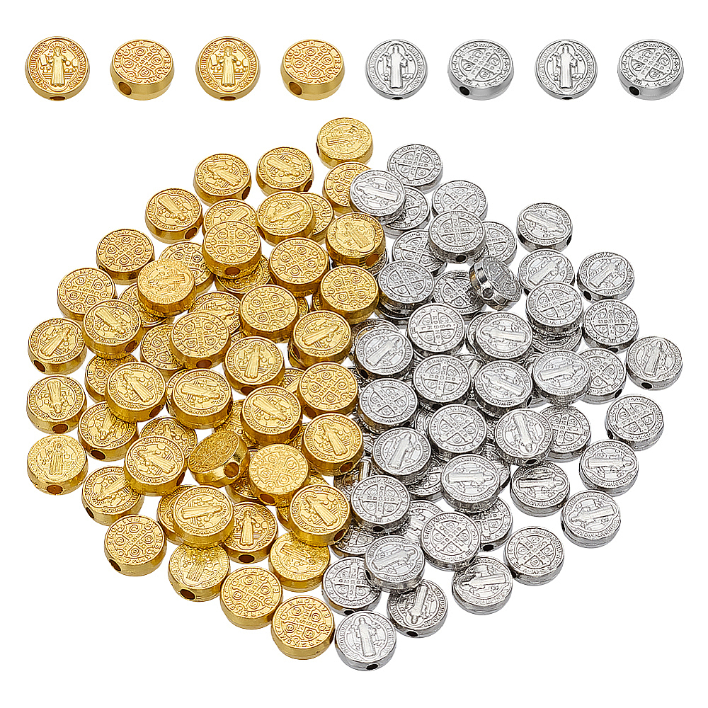 120 шт 2 цвета бусины из сплава тибетского стиля, плоские круглые с святым Бенедиктом