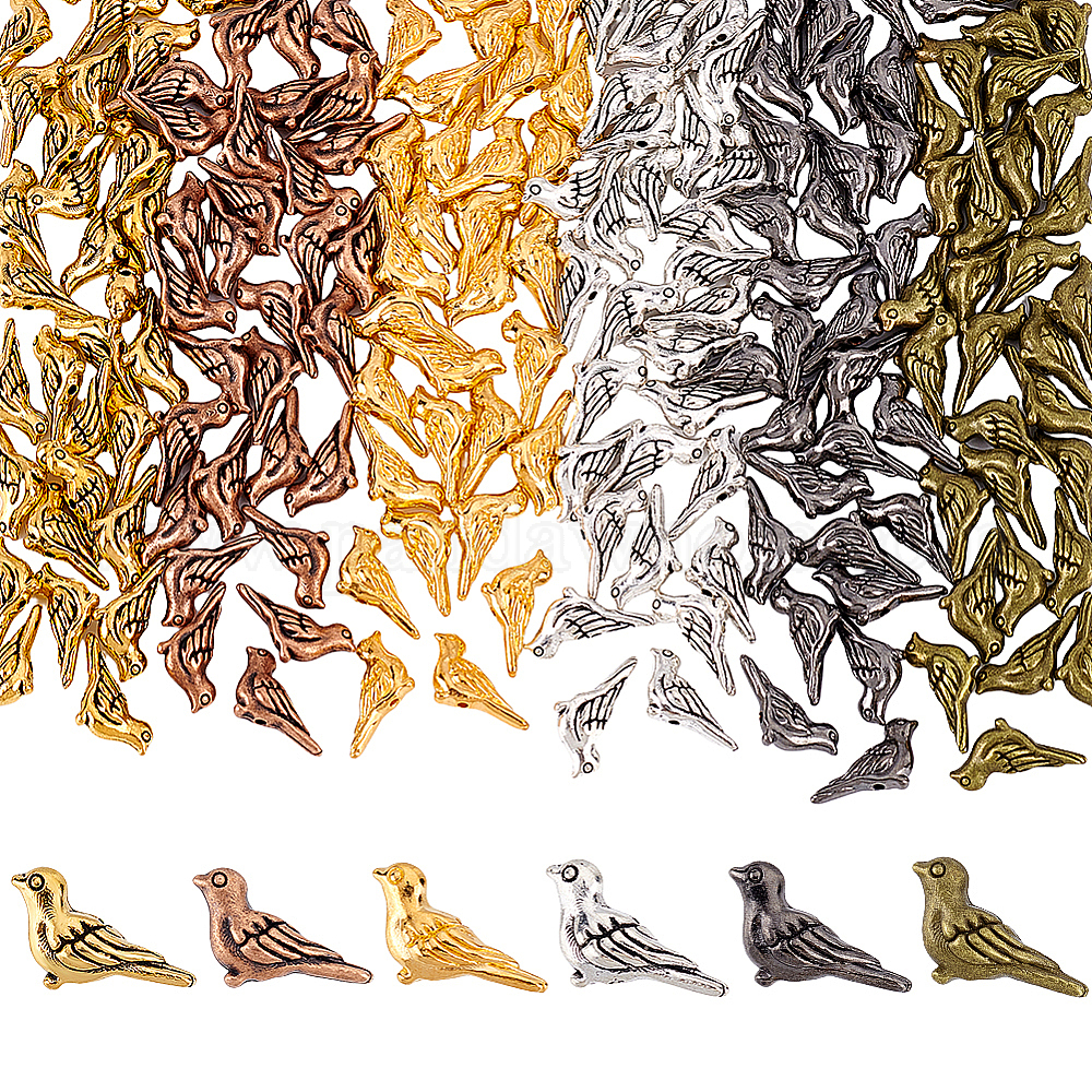 180 шт 6 цвета бусины из сплава тибетского стиля, птица