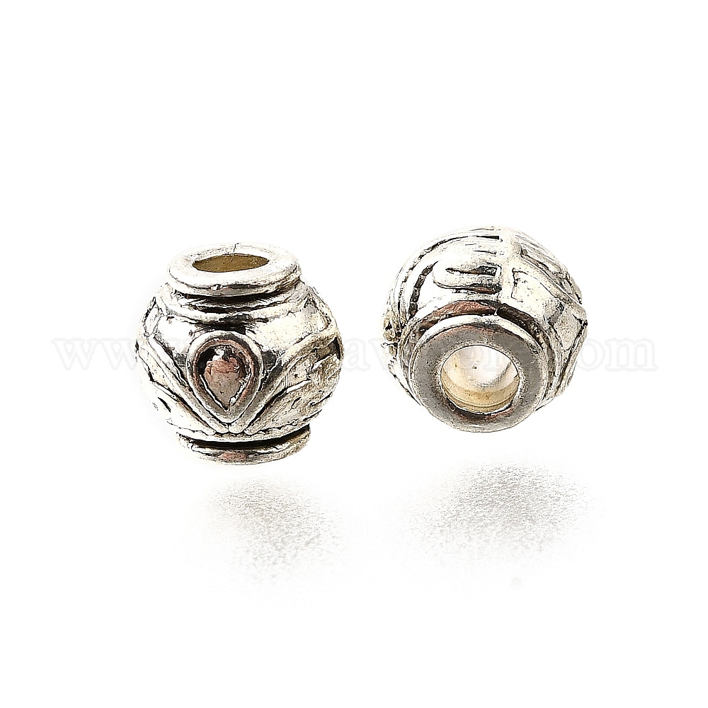 • Античное Серебро Сплавочные овальные бусины тибетского стиля , без кадмия и без свинца, круглые, античное серебро, 7~7.5 мм, отверстие : 2.5 мм, Около 940 шт / 1000 г