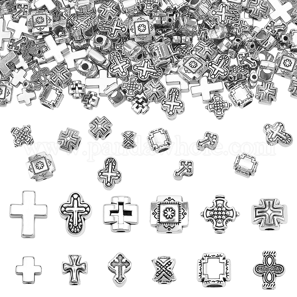 180 шт 12 стили бусины из сплава в тибетском стиле, без кадмия и без свинца, крестик