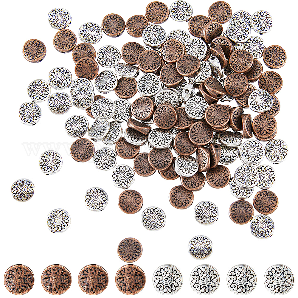 120 шт 2 цвета бусины из сплава тибетского стиля, без кадмия, без никеля и без свинца, плоские круглые с цветком