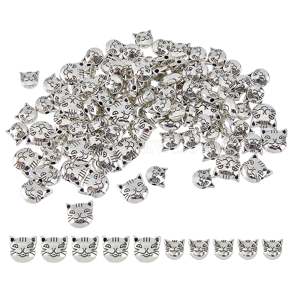 100 шт 2 стили бусины из сплава в тибетском стиле, голова кошки