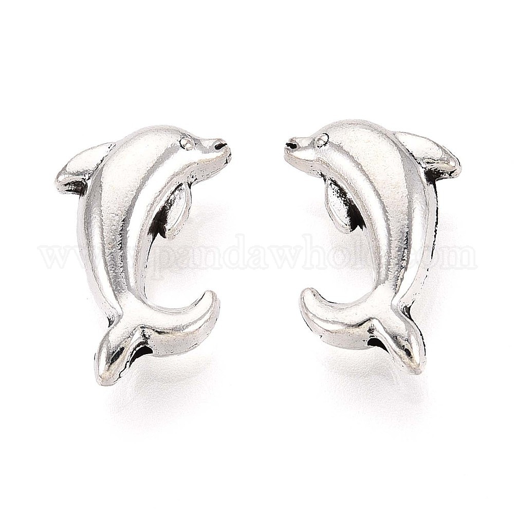 Сплавочные овальные бусины тибетского стиля , дельфин, без кадмия и без свинца