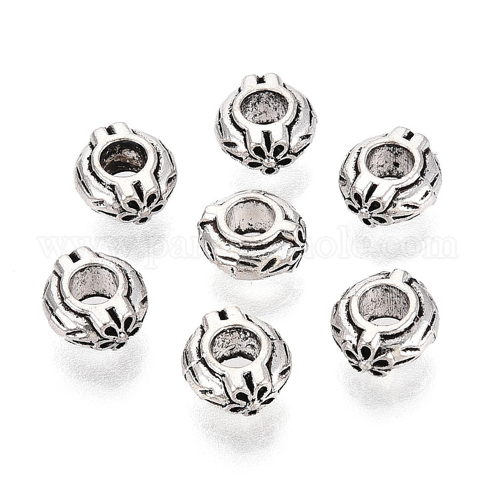 Сплавочные овальные бусины тибетского стиля , RONDELLE с цветком